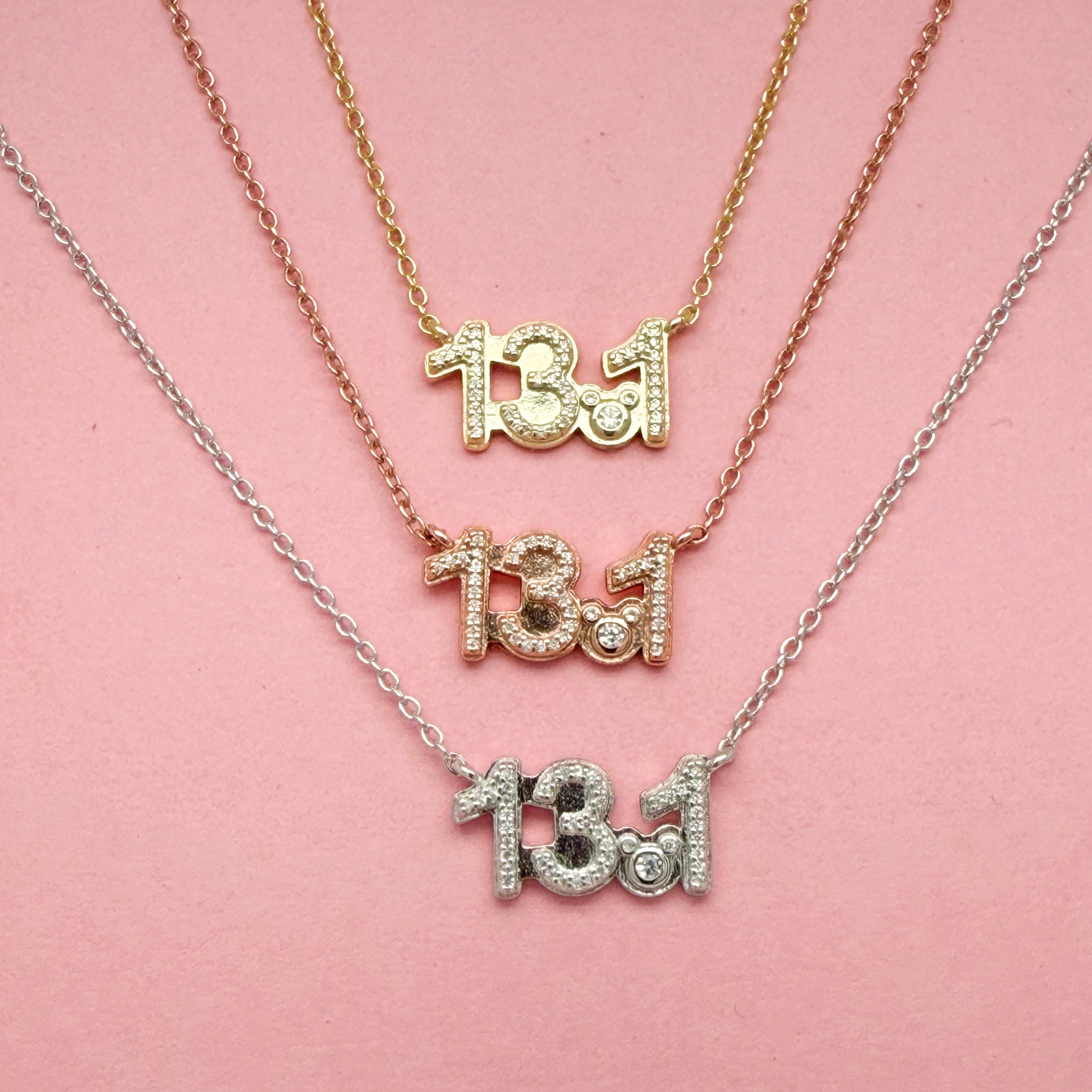 Our 13.1 Magical Mileage Necklace has been created in hypoallergenic .925 Sterling Silver coated in 18k gold. The chain is 16-18 inches adjustable in length. This intricately detailed piece was designed to be dainty enough for a touch of every day beauty and magic in or out of the parks.